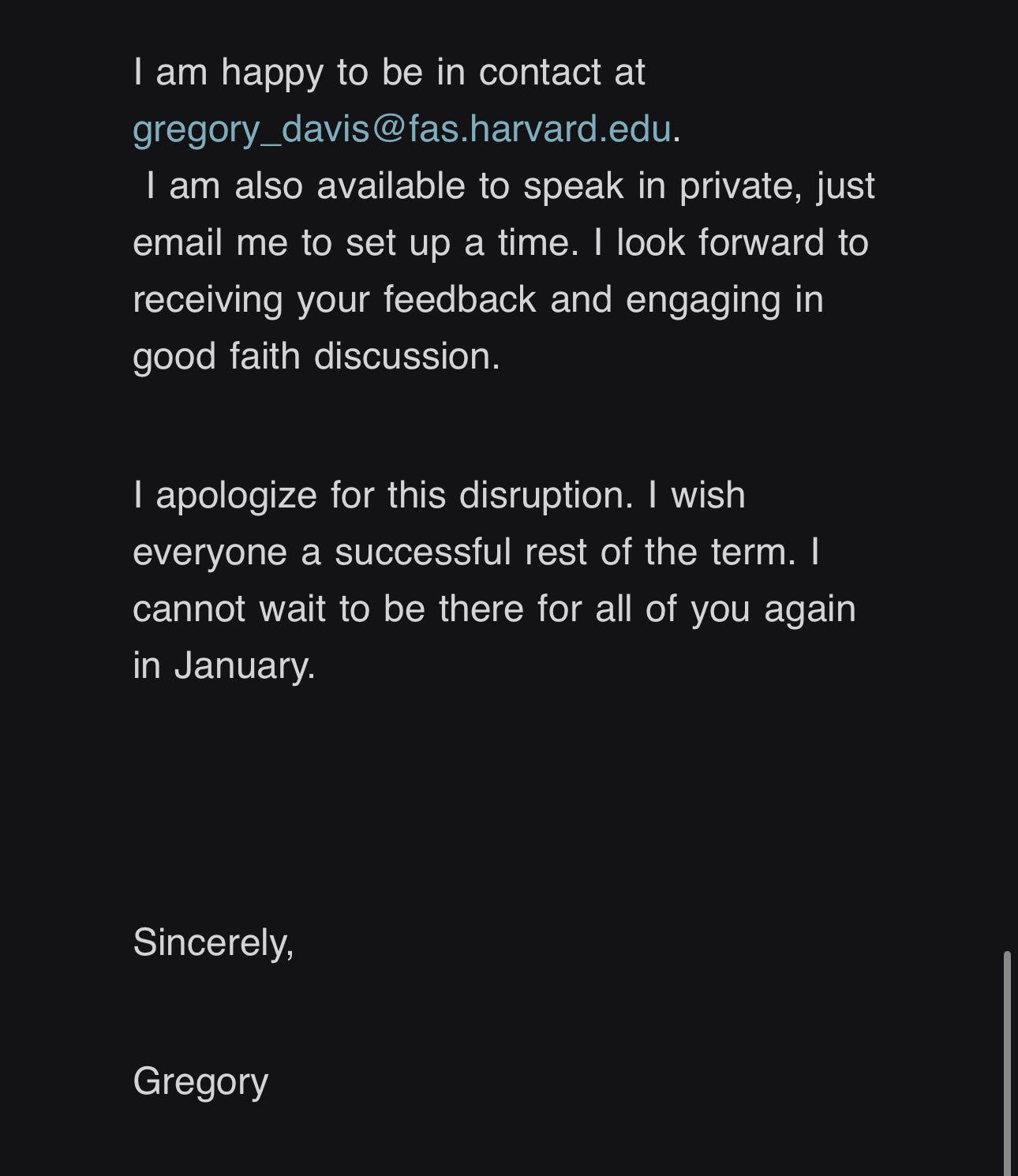 It is clearer now than ever that Gregory Davis must be fired. If Harvard wants to restore even a shred of its institutional legitimacy—let alone its federal funding—it will do what is right and remove him from any position of authority before he ever interacts with students again.